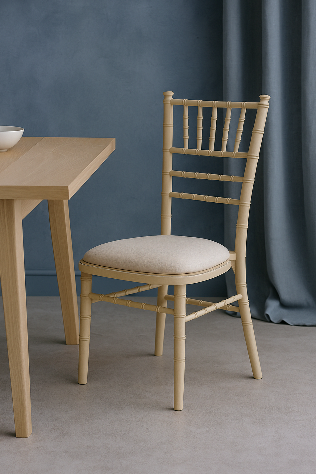 The Opal Classic Chair embodies modern elegance with a soft, timeless charm. Crafted with a sleek white finish and subtle detailing, it pairs beautifully with cool grey and blue interiors.