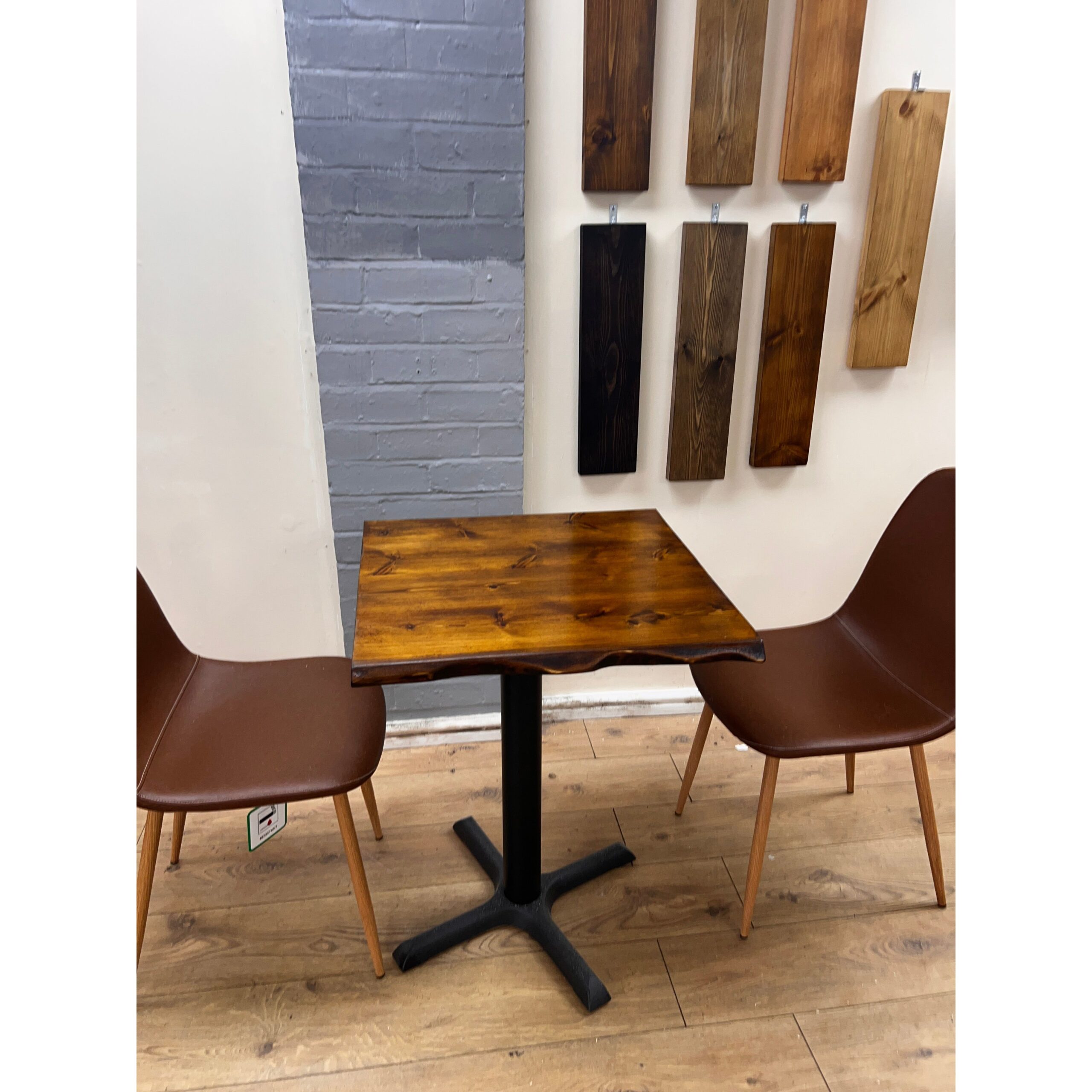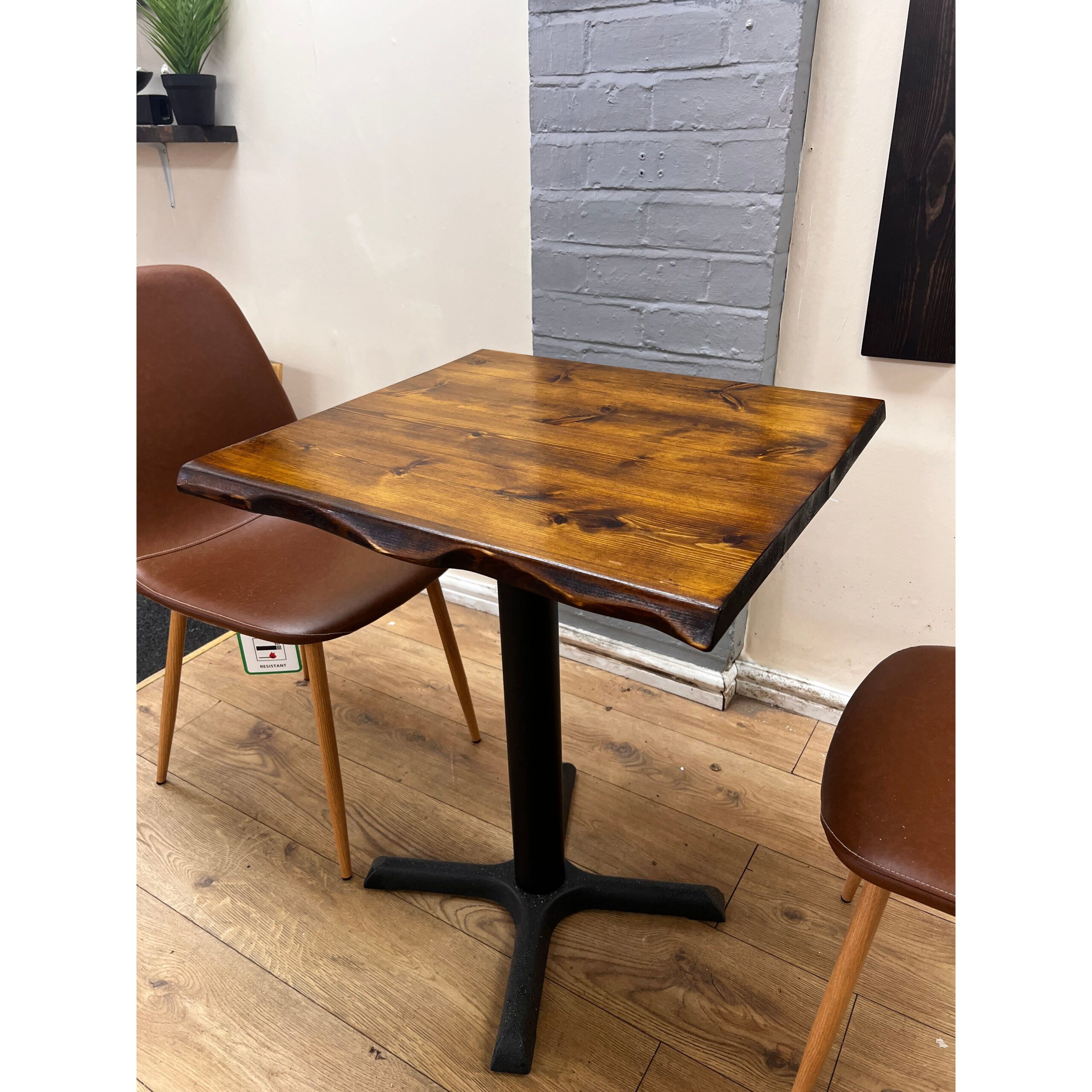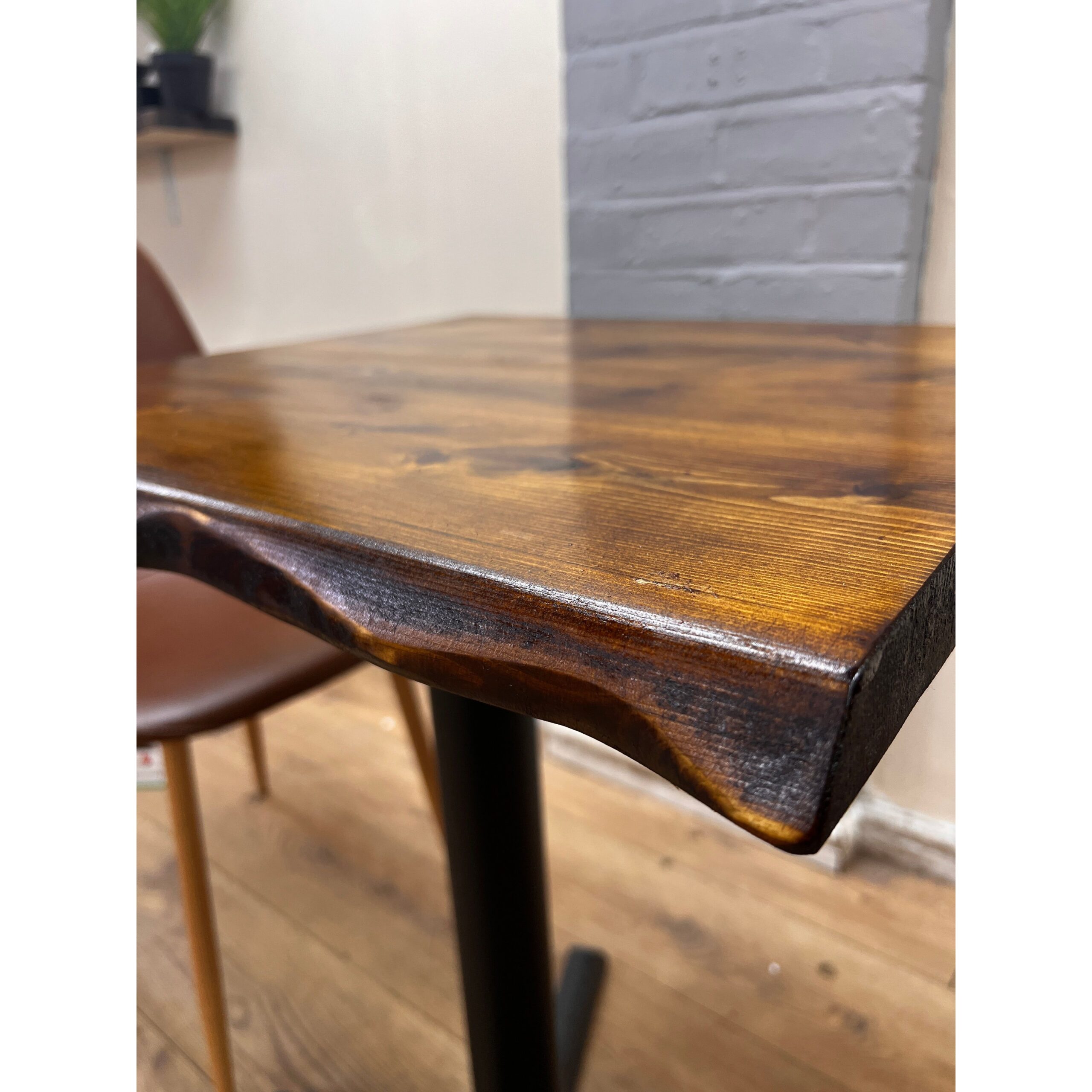 The Solid Wood Cafe Table Waney is the perfect addition to any cafe or restaurant. Constructed from high-quality solid wood, it offers a durable and stylish table for your dining area. Its unique waney edges give it a natural and rustic appearance, adding a touch of charm to any space. Upgrade your furniture with this beautiful and functional table.